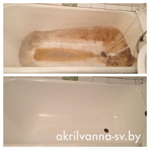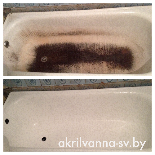 Отличительной особенностью реставрации ванн жидким акрилом является то, что акрил наносится на верхние борта ванны (без использования кисти или валика) и стекает к сливу оставляя за собой равномерную и гладкую поверхность. У Вас нет необходимости демонтировать ванну, ломать голову в вопросе, как её вынести и сколько же всё это будет стоить!